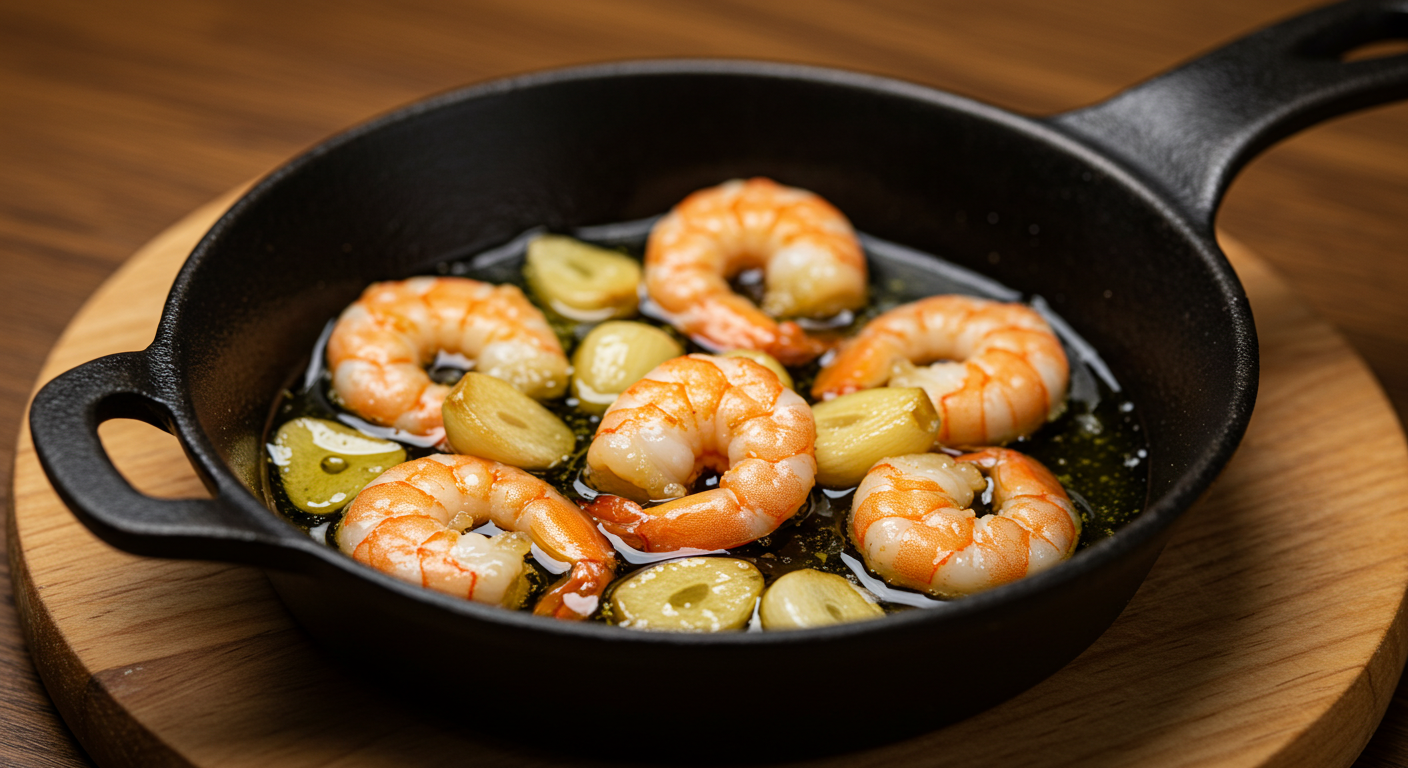 - 재료: 새우, 통마늘, 페페론치노(또는 건고추), 올리브오일, 소금, 후추, 바게트빵