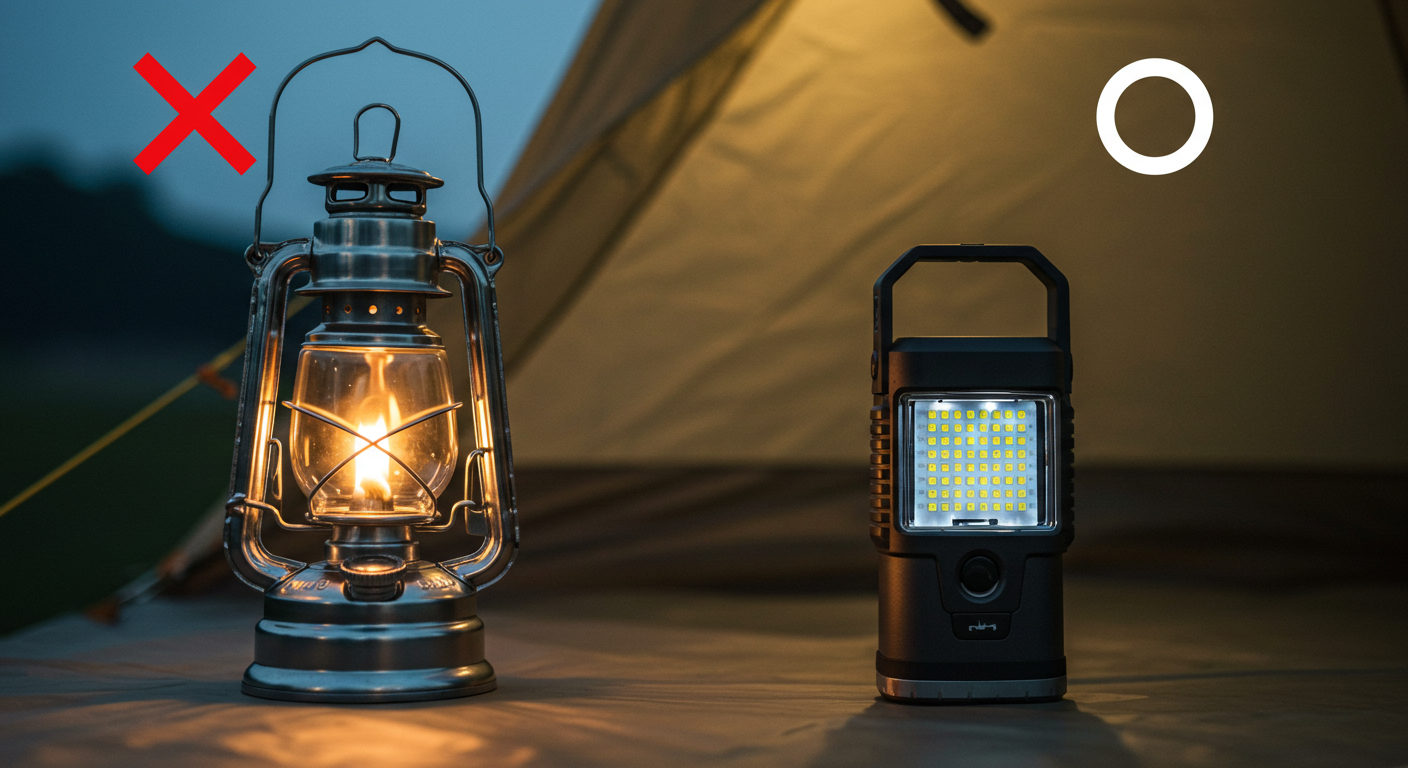 A. 안전과 실용성 면에서는 LED랜턴이 압도적으로 좋습니다. 텐트 안에서도 안전하게 쓸 수 있고, 밝기/색온도 조절이 자유로우며, 파워뱅크 기능까지 있죠. 가스랜턴은 실제 불꽃이 주는 '찐감성'과 약간의 난방 효과가 있지만, 화재와 일산화탄소 중독 위험이 있어 반드시 텐트 밖에서만, 주의해서 사용해야 합니다.