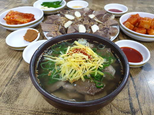 A. 나주 곰탕은 '토렴(밥을 뜨거운 국물에 데웠다 따랐다 하는 방식)'을 해서 나옵니다. 밥알 사이사이에 맑은 고기 국물이 스며들어 있죠. '수육' 한 접시를 시켜서, '묵은지'에 싸 먹으면... (더 이상의 설명은 생략합니다 🤤)