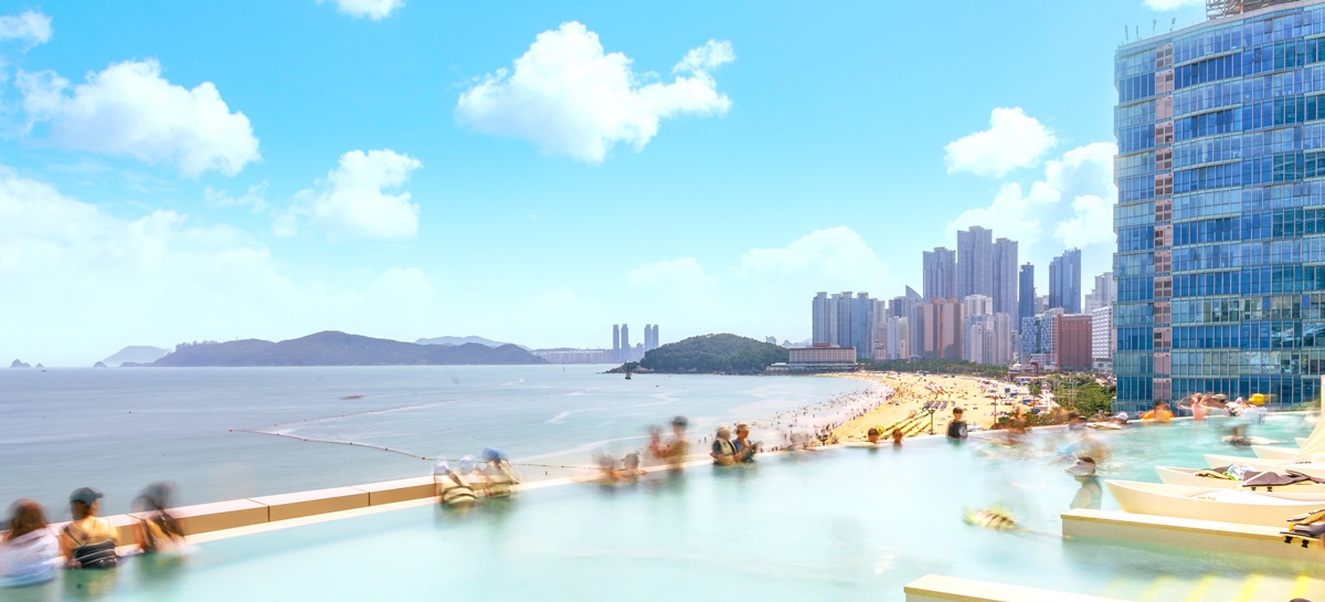 2024년 '국민보양온천' 지정! 엘시티 3~6층에서 해운대 바다를 내려다보며 즐기는 인피니티풀과 워터파크는 인생샷 필수 코스입니다.