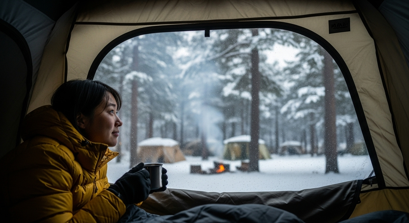 겨울 캠핑의 생명은 텐트 안에서 바라보는 '투명한 설경'입니다.