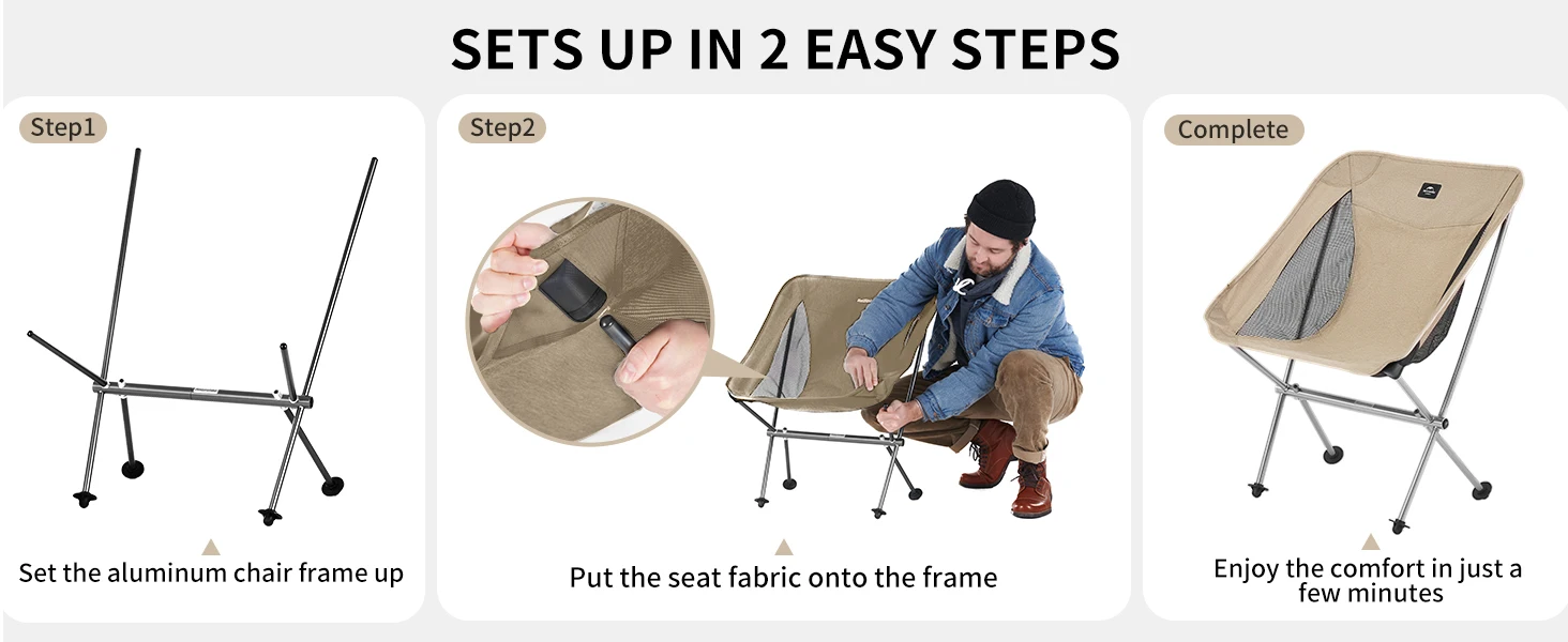Naturehike 2024 Camping Chair Ultralight High Load Folding Quick Build Garden Chair Outdoor Foldable Picnic Beach Moon Chair - A