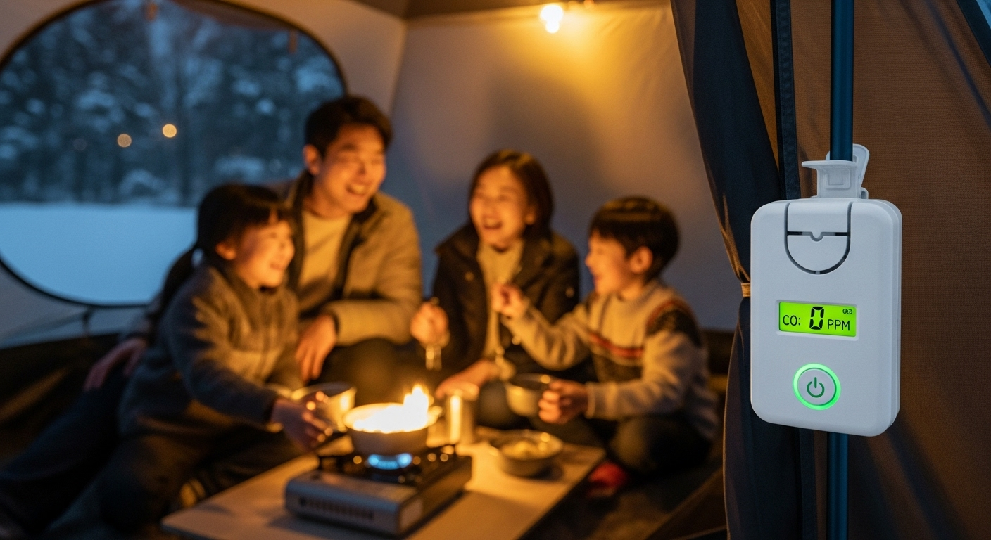 ①경보기는 2개 이상 준비해 하나는 침실 머리맡(호흡기), 하나는 천장 쪽에 설치하세요. (교차 검증!) ②텐트 환기구(벤틸레이션)는 항상 열어두고, ③난로를 켤 땐 '숯불/화로대'는 절대 텐트 안에 들이지 마세요. (숯은 CO 발생량 최강입니다!) ④조금이라도 두통이 오면 즉시 탈출하고 119!