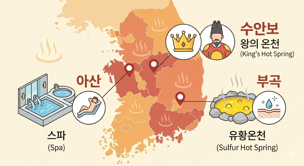 1. 각 온천 지구(수안보, 아산, 부곡) 관광 협회 공식 자료