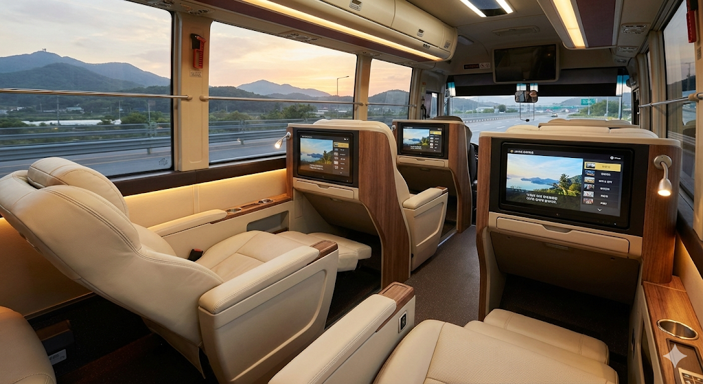 요즘 프리미엄 버스는 '도로 위의 퍼스트 클래스'입니다. KTX보다 예매 경쟁이 덜하고 좌석은 훨씬 편안합니다.