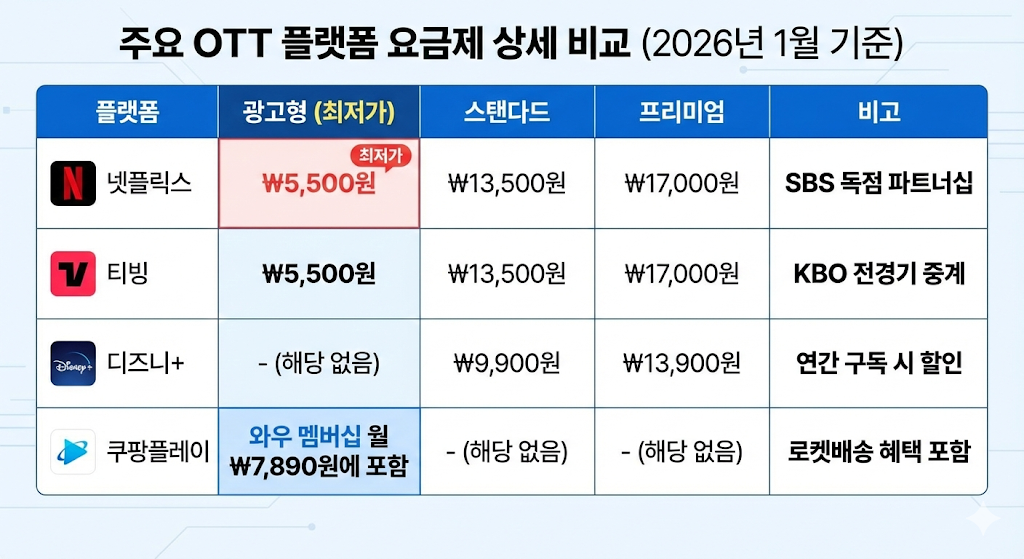 - 각 OTT 플랫폼 공식 홈페이지 (2026년 1월 기준)