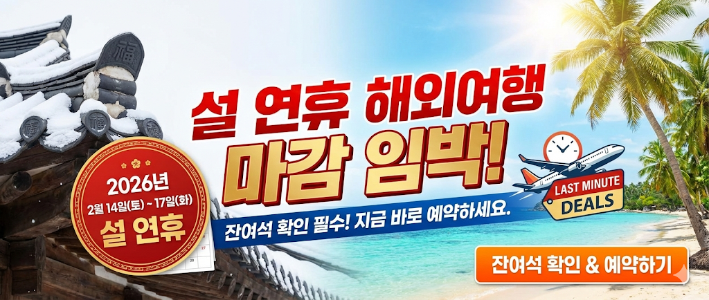 안녕하세요! 여러분의 여행 해결사 깡이서방입니다. 2026년 새해가 밝은 지 엊그제 같은데 벌써 설날 연휴가 코앞으로 다가왔습니다. 올해 설날은 2월 17일(화)이라 주말 포함 5일(2/14~2/18)을 꼬박 쉴 수 있는 황금 같은 기회입니다. 목요일, 금요일 연차 이틀만 내면 무려 9일을 쉴 수 있죠!