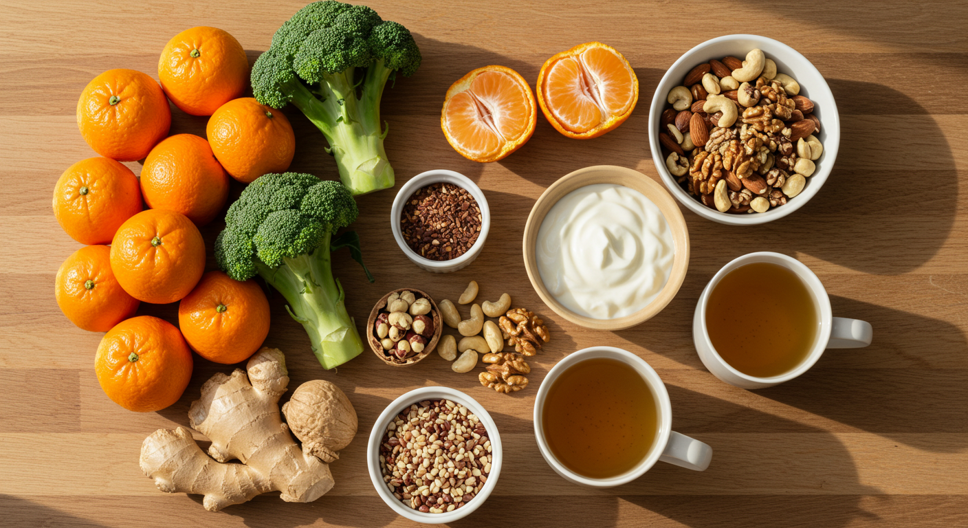 | 비타민 C | 귤, 오렌지, 키위, 브로콜리, 피망 | 강력한 항산화 작용으로 면역세포 기능 향상 |