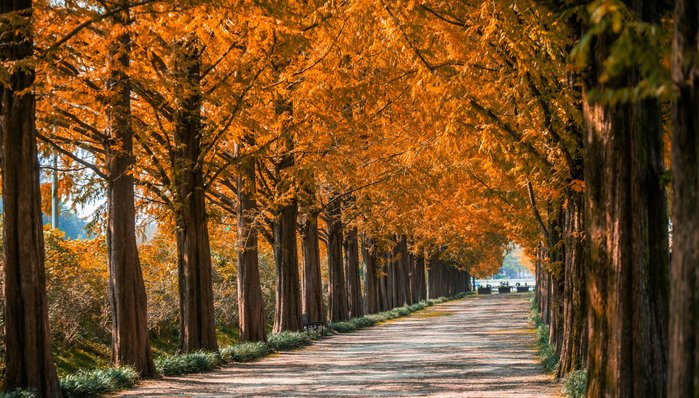 | 담양 메타세쿼이아길 | 전남 담양 | #시간여행 #인생샷명소 | 유명하지만 '이른 아침'에 방문하면 아무도 없는 몽환적인 가을 숲길의 주인이 될 수 있음. |