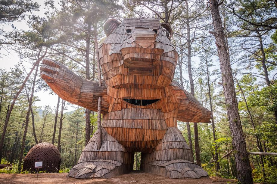 2️⃣ 공주 연미산 자연미술공원 (충남): 숲속을 거닐다 불쑥 나타나는 예술 작품들을 만나는 재미! 금강이 내려다보이는 고즈넉한 숲길을 따라 설치된 다양한 조형물들은 자연과 예술이 어떻게 하나 되는지를 보여줍니다. 북적임 없이, 사색하며 걷기 좋은 숨은 보석 같은 곳입니다.