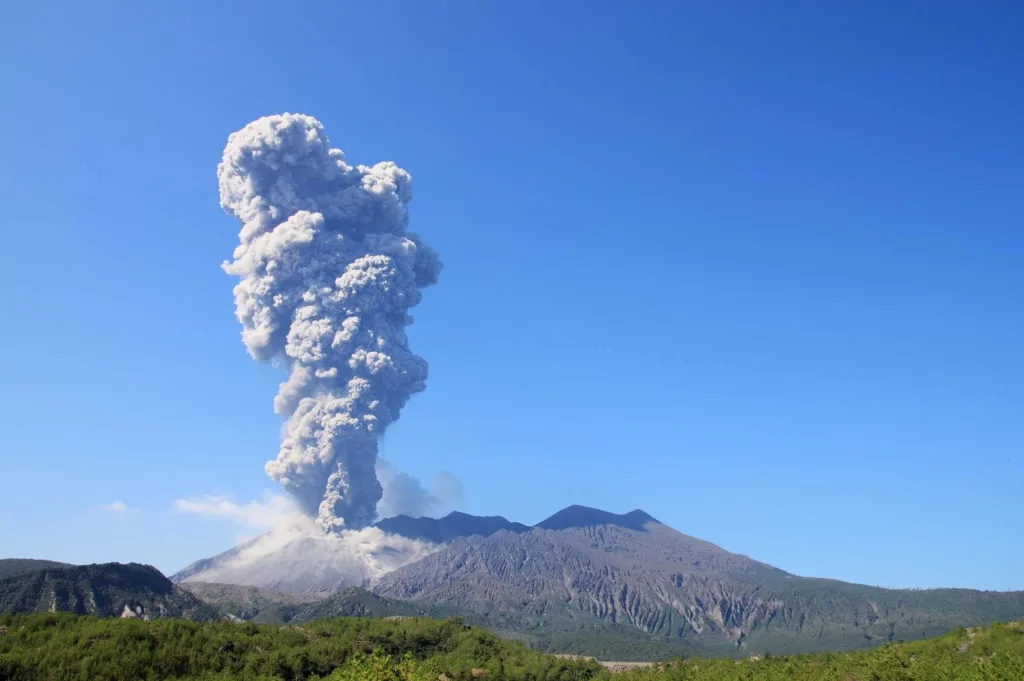 4️⃣ 가고시마 (가고시마 현): 아직은 따뜻한 남쪽 나라에서 여유로운 가을을! 활화산 '사쿠라지마'의 웅장한 풍경을 바라보며, 뜨거운 화산재 모래에 몸을 묻는 '이부스키 모래찜질'은 세상 어디에도 없는 특별한 온천 체험입니다.